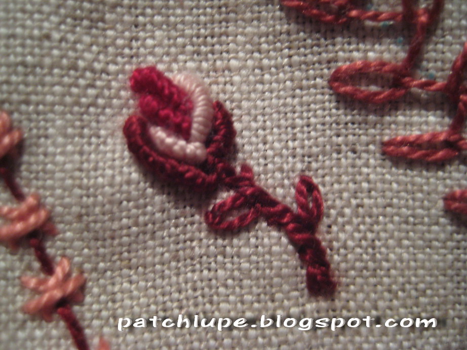 Puntitos bordados a mano de diferentes formas,con hilo del nº 8 sobre lino.